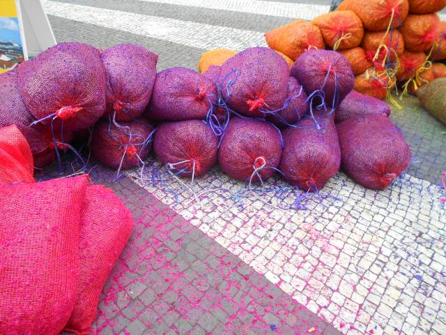Trucks and vans drop off burlap sacks full of flowers, leaves, and sawdust, as well as wooden forms with intricate, geometrical designs that will be laid down in the middle of the cobblestone streets, then filled with the fresh flower petals and variously coloured paper-thin wood chips and sawdust dyed in pink and yellow and blue. Incenso [sweet pittosporum] and criptoméria [Japanese cedar] evergreen leaves are used to trim the long thin borders of these flower carpets. By mid-morning the city streets are fully decorated and no one would dare trod on the flower carpets out of respect for the Christ who will pass by later on, enthroned and transported in his majestic and colourful andor.