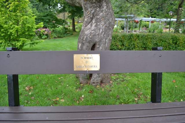 It made me think of all the other souls who linger in the confines of this garden filled with old trees and flower beds. I know that they do. There are reminders of people everywhere etched throughout the garden by markers and plaques at the foot of trees and on benches.  Some have faded over time but many of them are recent. They are symbols put there by people who continue to honour a loved one who had some connection with the garden. People who probably loved coming to it as much as I do.