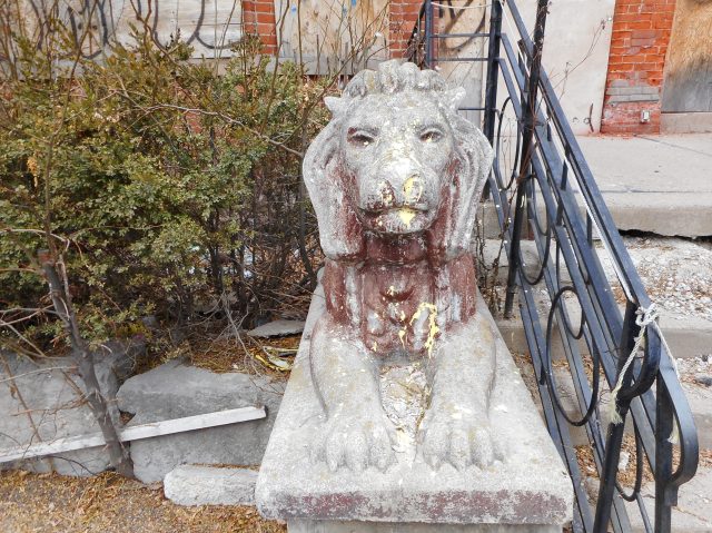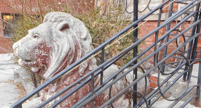 The house, even in its sad state of impending decay, still showed beauty and dignity, guarded by two very sad looking plaster lions who knew they had failed to protect it from the developers. I took my time looking at the house’s exterior, trying to feel its spirit and history in its elaborate rooflines, its variety of windows, its warm red bricks and wonderful decorative terra cotta.