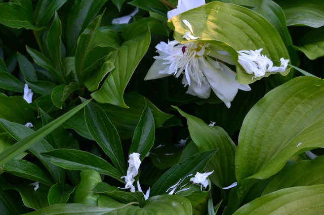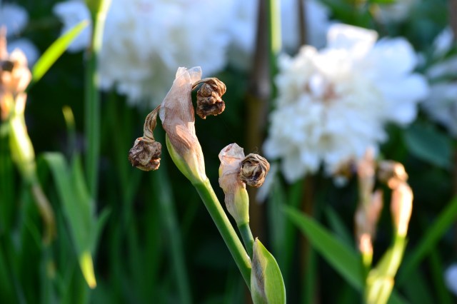 My garden is mostly a perennial garden with different types of Hosta, sturdy and reliable, filling out the garden, year after year, lovers of shade, but burning with too much sun exposure; Peonies that grace the garden in June for a few weeks at the most, delicate and falling apart with the slightest disturbance of wind and rain; Irises, with long stalks that soon droop within days of their glory; Spirea that blooms in a shock of white beauty that within a few days starts to fall like dry snowflakes; Daylilies that open up and close up in response to light; Lilac trees that exude a sweet fragrance for a little while before turning brown after a short-lived season; Queen Anne’s Lace, delicate and white beautiful things; Bleeding Hearts that hang as reminders of human hearts and their frailty; Tulips in April, a splash of colour until their petals fall unless already eaten by squirrels; Hydrangea bushes that bloom in summer but are fussy and need watering, otherwise, they droop and shrivel up.