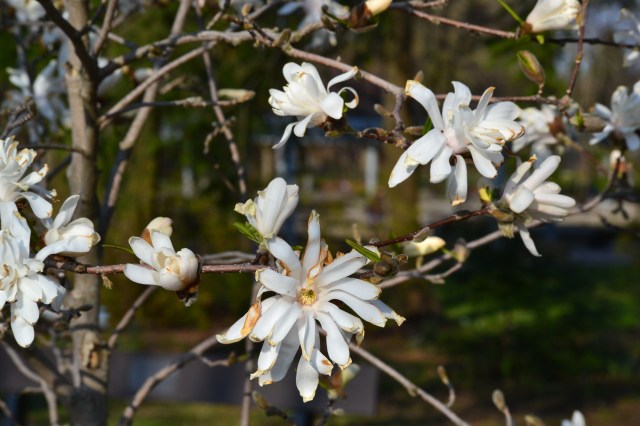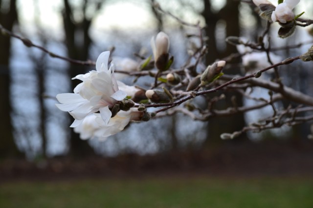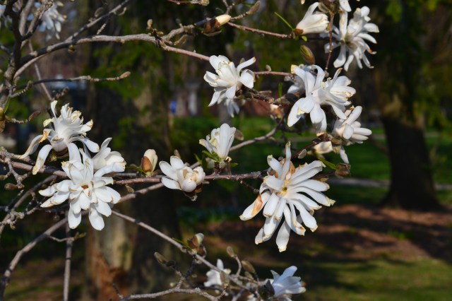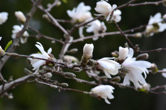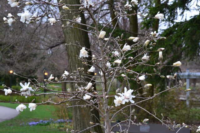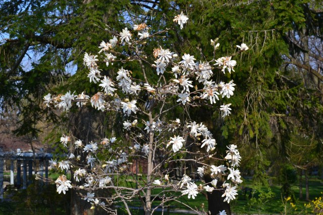 Rosetta McClain Gardens, a place I like to showcase on my blog from time to time is, as far as public gardens go, a modest place. It has no showy or spectacular plants and flowers. Yet what is there, delights the eye with simple beauty. Like the small magnolia tree, a Magnolia Stellata, also known as Royal Star Magnolia, native to Japan, which lives close to the edge of the garden near the bluffs with views of Lake Ontario.