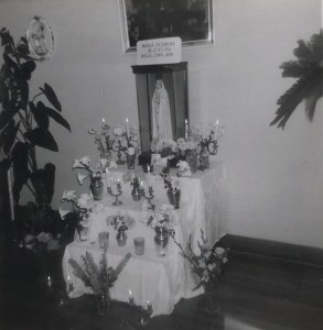 We would gather to pray the rosary in front of Our Lady of Fatima. Photo from May, 1969, Toronto, Canada.