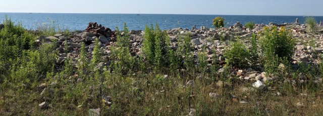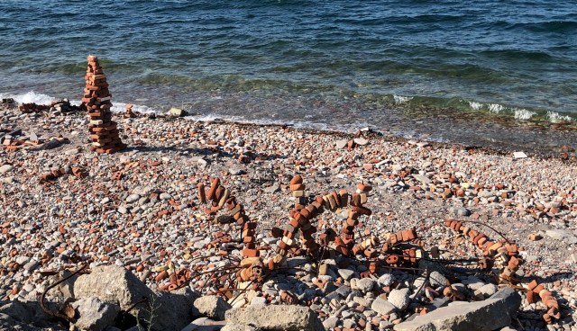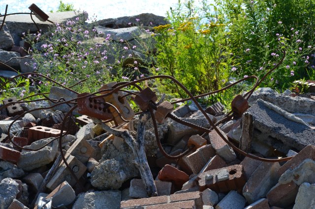 Tommy Thompson Park is a great place for walks and cycling along 10 kilometers of nature paths with wonderful views of Toronto’s cityscape. It’s also the home of remnants of demolition materials turned haphazardly into art along the shore of Lake Ontario.