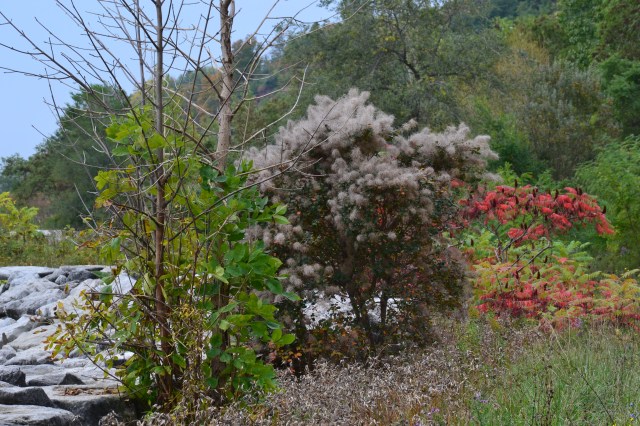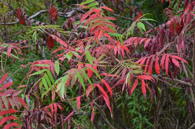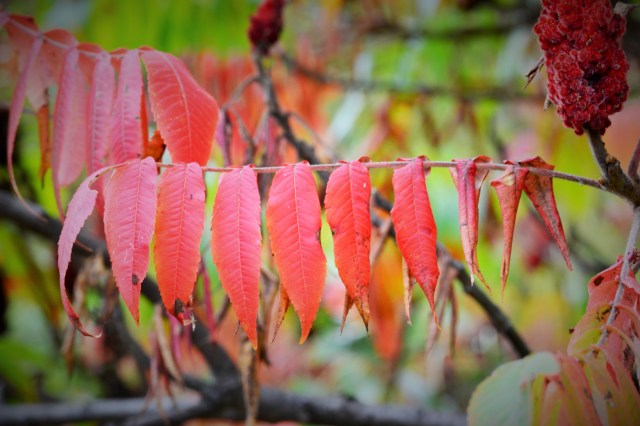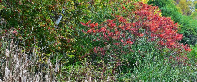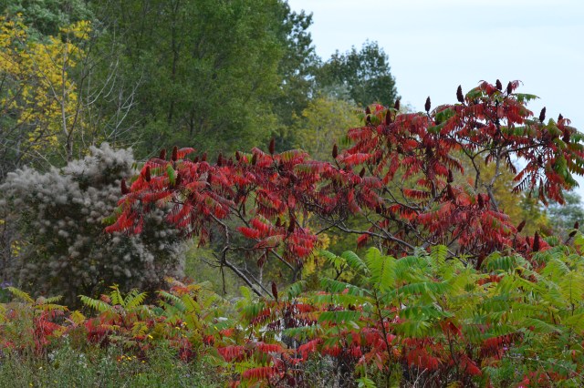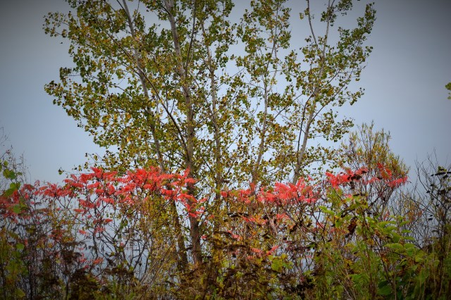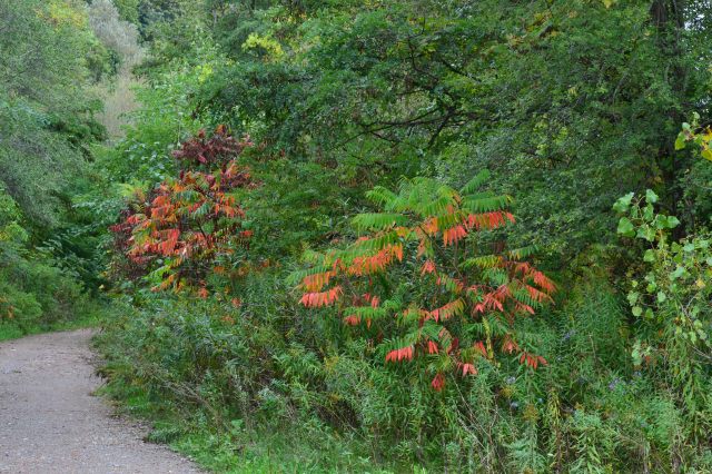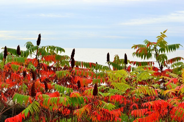 It’s mid-October and the colours of autumn in Toronto are taking their time in reaching a full show of yellows and reds, although some have already made their presence on trees. A visit to the Doris McCarthy Trail starts with a descent along a path through a beautiful forest with a brook below, the sound of running water a soothing soundtrack to accompany your walk until you arrive at the bottom of the trail. There you are greeted by the expanse of Lake Ontario. You can then walk for a long time and enjoy the sight of the lake on one side and the beauty of trees and sumac already turned red on the other. These are photos from a recent visit.