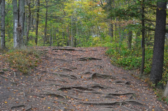 Not only the leaves. Wow, get a load of those lichens. And tree roots in the path!