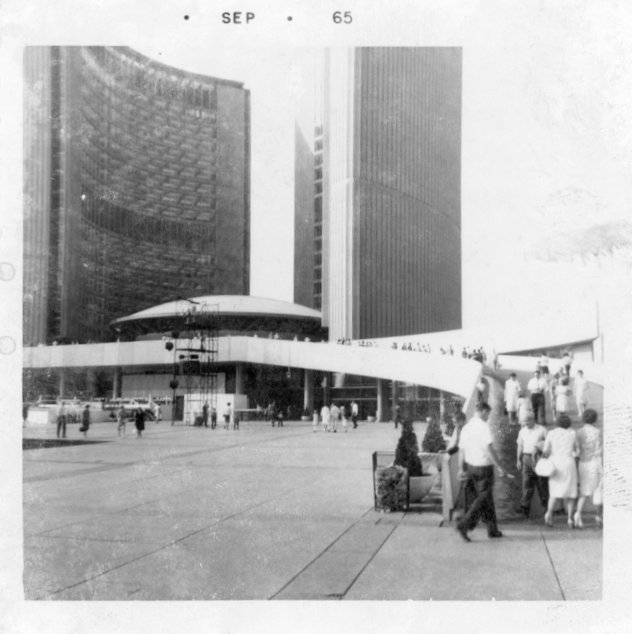 The ones of City Hall, at Nathan Phillips Square, which officially opened on September 13, 1965, coincidently the month and year stamped on his photographs, places my father perhaps there on that opening day or shortly thereafter.