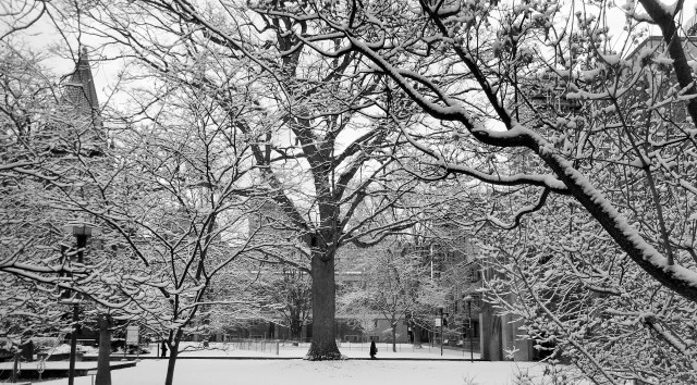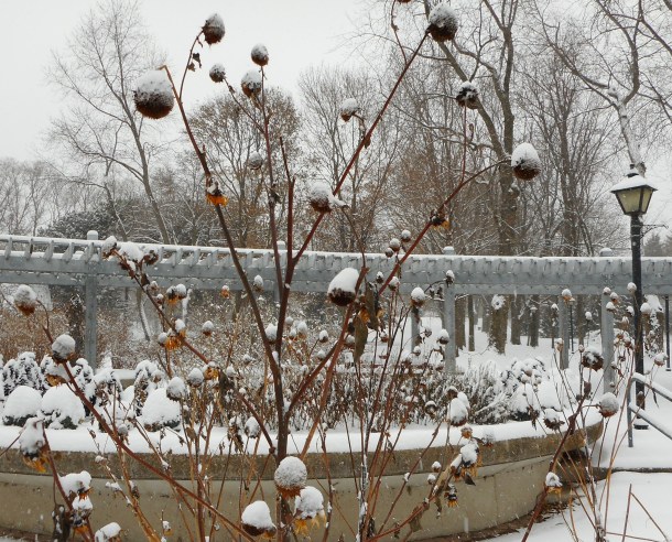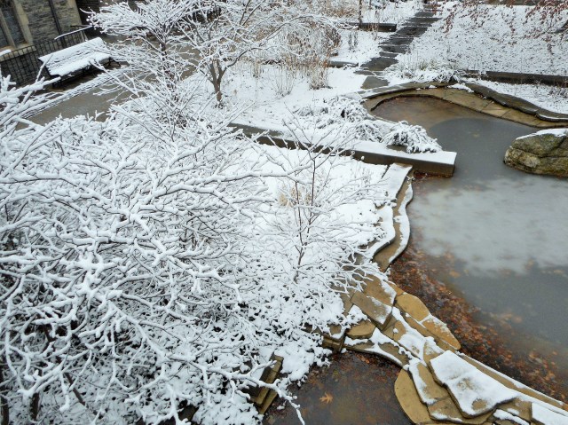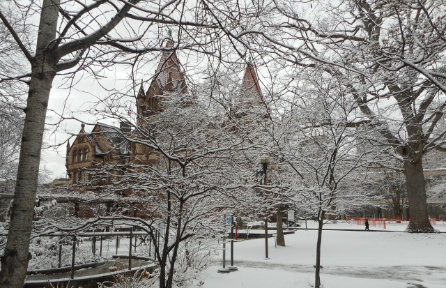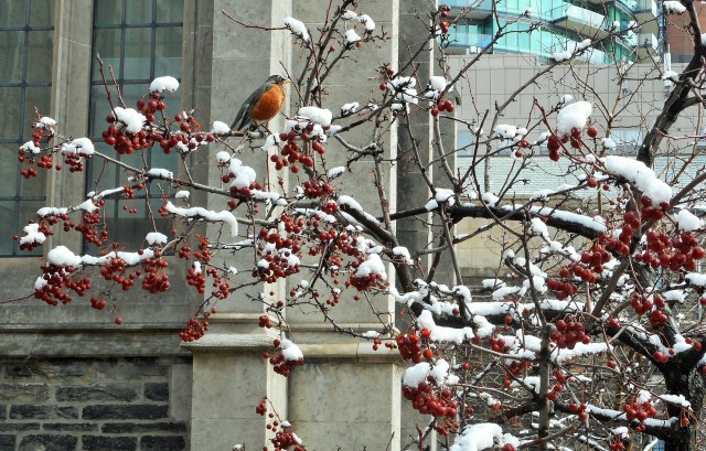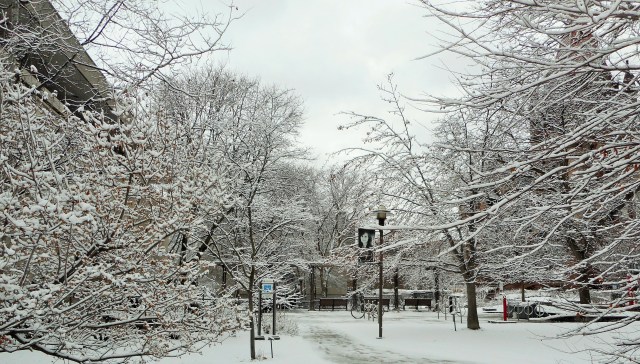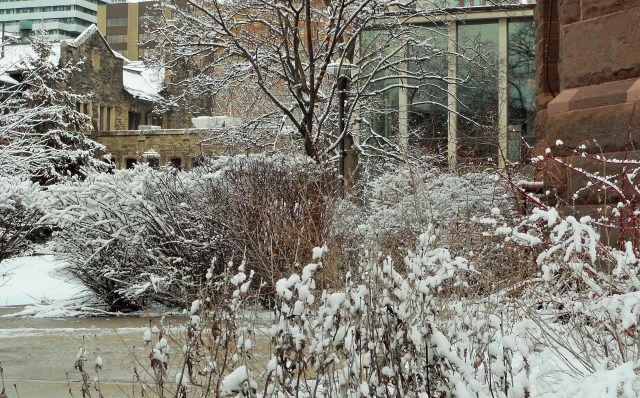 The snow came back yesterday to remind us that winter in Toronto is not yet over. I could not resist but take the time to walk around the campus where I work and capture images of the beauty around me. By noon the snow had mostly gone and what remained for me was the memory of a good start to a Friday morning. Sometimes it pays to get to work early.