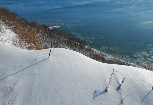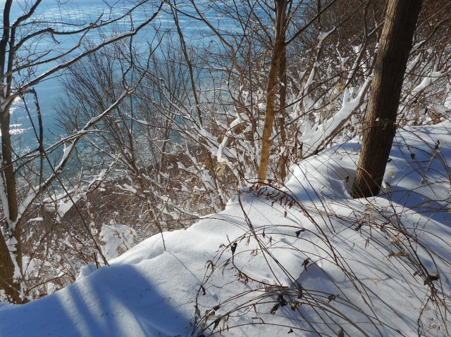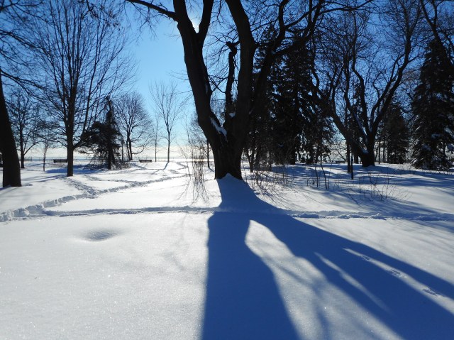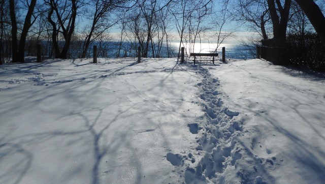 The views of Lake Ontario along the fence are always breathtaking but especially in winter when the whiteness around me ends where the blue or steel grey of the lake takes over.